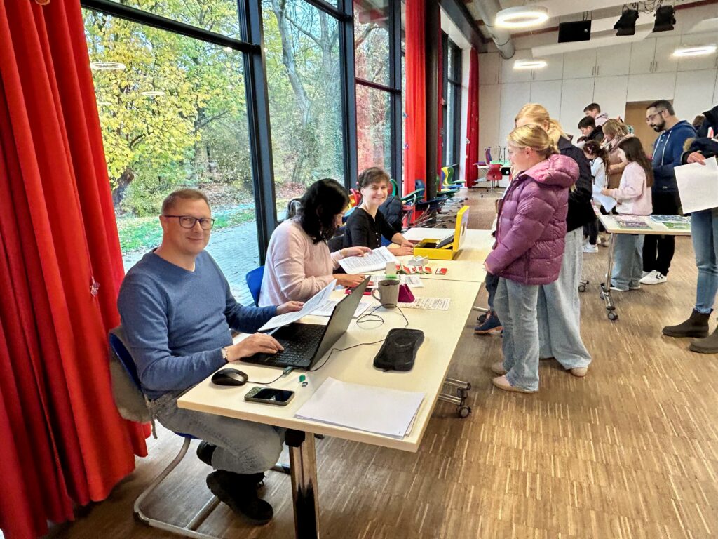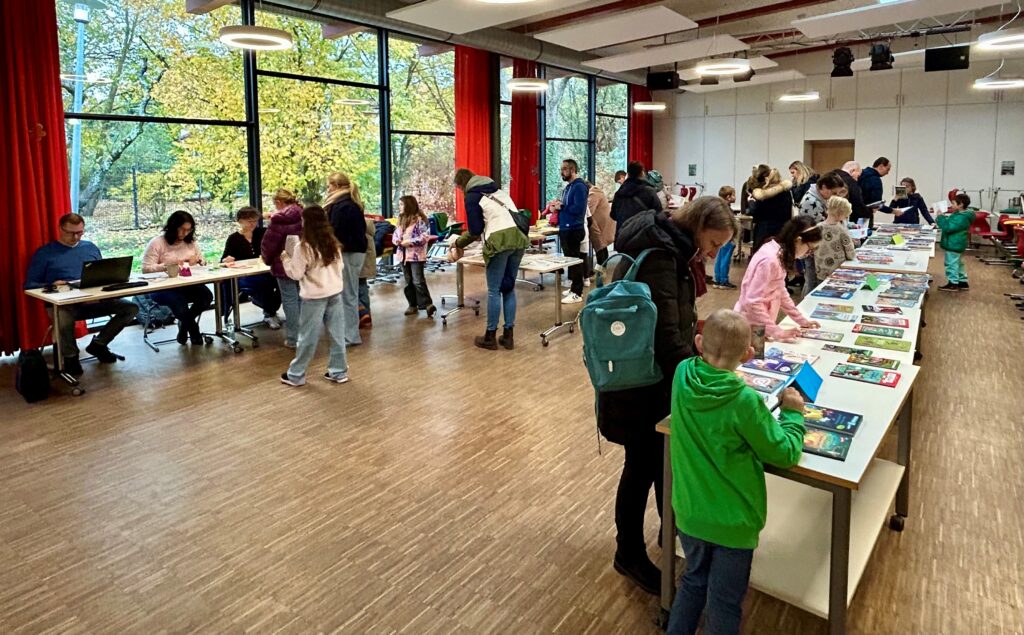 Am vergangenen Dienstag präsentierte Frau Nicolaisen mit ihrer Kollegin Frau Thome eine spannende Auswahl neuer Bücher. Während der gesamten Schulwoche konnten in unserer Schulbücherei alle 153 Bücher bewundert werden – und am Samstag, den 08.11.25, ging es dann beim Buchverkauf in der Mensa richtig rund!